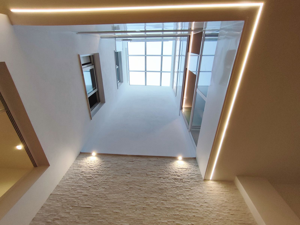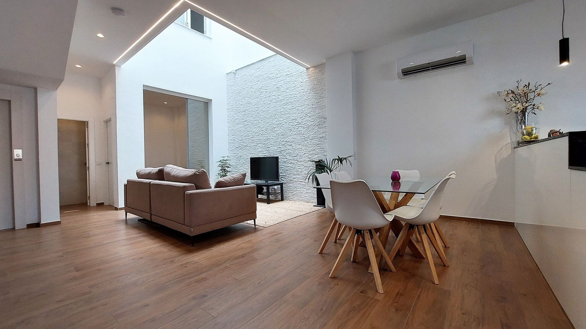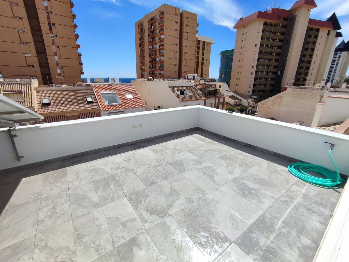 Magnífica vivienda unifamiliar en el centro de Fuengirola, a 50 metros de la playa. Construida totalmente nueva en el año 2021. Actualmente es una única vivienda, pero está preparada con instalaciones por si se quiere transformar en un edificio de 3 apartamentos. La vivienda consta de 3 plantas + solarium. En este momento tiene 3 dormitorios, pero se pueden hacer 5 dormitorios, en la planta baja nos encontramos con un gran salón-comedor, con techo automático y sensor de lluvia en el salón, cocina abierta totalmente equipada con encimera de granito, un baño completo y un dormitorio con armario empotrado, y ascensor. En la planta primera se encuentra un salón, 1 dormitorio con armario empotrado y un baño completo, en la planta segunda se encuentra un 3º dormitorio, 1 baño completo y una terraza. La planta solarium tiene una terraza con placas solares, a parte tiene sistema de aerotérmia. Altas calidades de construcción.